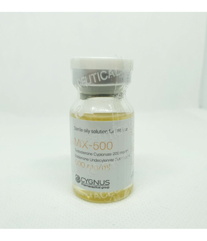 MIX-500 10ml 500/1ml CygnusВ нашем магазине вы можете на выгодных условиях заказать MIX-500. Этот препарат изготовлен болгарской компанией Сигнус Фармасьютикалс и является композитным. В его состав входят два активных компонента: Болденон Ундесиленат и Тестостерон Ципионат. Опытные атлеты уже поняли, что такой состав является отлично сбалансированным и позволяет набирать большое количество массы с минимальными рисками для здоровья.Тестостерон Ципионат – пролонгированный эфир синтетического мужского гормона. Он пользуется большой популярностью в спорте, особенно среди западных билдеров. Болденон Ундесиленат также отлично востребован на современном рынке фармы. Он, как и ципик, отличается пролонгированным воздействием на организм. Так как оба активных компонента являются сильными массонаборными ААС, то купить MIX-500 стоит в период набор массы.Эффекты MIX-500активно стимулирует процессы гипертрофии мышечной массы;способствует росту силового потенциала и работоспособности;положительно влияет на работу суставов;отличается сильными антикатаболическими свойствами;усиливает аппетит.Соло курс MIX-500Рекомендуемая недельная дозировка анаболика составляет 500-1000 мг. Длительность курса с его участием составляет не менее двух месяцев. Также мы не рекомендуем принимать MIX-500, цена которого выглядит привлекательно, более трех месяцев. Это связано с тем, что Тестостерон Ципионат способен подавлять активность гипофизарной дуги. Таким образом, если вы планируете проводить курс длительностью от 12 недель, то вам необходимо купить Гонадотропин. Кроме этого потребуется спортсменам и ингибитор ароматазы. Этот медпрепарат обязателен к использованию вне зависимости от длительности использования стероида.Комбинирование препаратаПо большому счету, данный анаболик уже является комбинированным курсом. Однако при желании спортсмены могут сочетать его прием с другими ААС. Например, Параболан, Туринаболом, Тренболон Энантатом, Оксиметолоном и т.д.ПКТ после курса MIX-500Данный препарат отличается большой силой воздействия на организм. Этот факт говорит о необходимости проведения восстановительной терапии после отмены MIX-500. В течение 3-4 недель вам необходимо использовать Тамоксифен либо Кломид. Начинайте ПКТ через 2,5-3 недели с момента последнего введения препарата. Приобрести различные виды спортфармы в нашем магазине могут атлеты из любого города Украины: Запорожья, Киева, Белой Церкви, Ивано-Франковска, Львова и т.д.