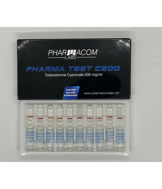 Купить Тестостерон Ципионат Pharma Test С 200 в ампулах Pharmacom Labs Pharma Test C 200 (Фарма Тест 200) – популярный стероид, применяемый атлетами для увеличения силового потенциала и набора массы. В основе этого ААС лежит Тестостерон Ципионат. Это эфир пролонгированного действия, способный работать на протяжении порядка 15 суток с момента введения. Тестостерон Ципионат отличается высокой анаболической и андрогенной активностью. Мы рекомендуем купить Фарма Тест 200 (Фармаком Лабс) для проведения мощных массонаборных курсов.Эффекты Pharma Test C 200 (Фарма Тест 200)Правильно составленный и проведенный курс с участием этого препарат позволяет атлетам рассчитывать на получение следующих результатов:набрать за один курс минимум 7 кило массы;значительно увеличить силовой потенциал;улучшить мотивацию и общий тонус;усилить сексуальное влечение;усилить аппетит;улучшить работоспособность суставно-связочного аппарата.Именно благодаря этим эффектам атлеты часто решают заказать Фарма Тест 200. Это весьма эффективный стероид, с помощью которого можно существенно улучшить спортивные результаты.Соло курс Pharma Test C 200 (Фарма Тест 200)Так как препарат после введения способен работать длительное время, то в для обеспечения ровного гормонального фона достаточно делать 1-2 укола на протяжении семи суток. Длительнсоть курсов с участием Test С, цена которого невысока, составляет 203 месяца. Так как в основе данного стероида лежит эфир тестостерона, то на курсе ципика возможна сильная ароматизация. Чтобы избежать эстрогенных побочек, атлетам предстоит принимать ингибитор ароматазы. Чаще всего они выбирают Анастрозол.Комбинирование препаратаPharma Test C может сочетаться с любыми ААС. Так как этот препарат лучше всего проявляет себя в период набора массы, то и оптимальными связками для него будут следующие препараты: Тренболон Энантат, Дека, Оксиметолон, Параболан, Метандиенон, Болденон. С их помощью можно набирать большое количество массы.ПКТ после курса Pharma Test C 200 (Фарма Тест 200)Восстановительная терапия должна стартовать дней через 13-16 после последней инъекции ципика. В течение 3-5 недель атлетам необходимо использовать Кломифен Цитрат либо Тамоксифен. Суточная дозировка первого препарат составляет 100-50 мг, а второго – 20 мг. Приобрести спортивную фармакологию на выгодных условиях в нашем магазине могут атлеты, проживающие в любом городе Украины: Белой Церкви. Харькове, Киеве, Львове и т.д. Мы доставим ваш заказа на указанный адрес в максимально короткие сроки.