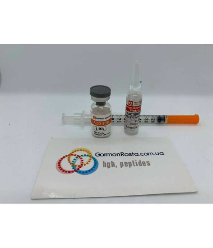 Пептид AOD9604 (аод9604) 5mg (более эффективен, чем HGH Frag 176-191). Купить его доступной цене в Украине лучше всего на нашем сайте! AOD9604 (аод9604) PeptideSciences – это эффективный фармакологический препарат-пептид. Это отрезок цепи гормона роста со 176 по 191 аминокислоты и является высокостабилизированным и устойчивым. Это многофункциональный препарат, в том числе – жиросжигатель, так как он успешно борется с лишними жирами подкожного слоя. Кроме того, он способен препятствовать образованию новых жиров. И еще он уменьшает накопление висцерального жира в организме. Поэтому для проблем жиросжигания препарат AOD9604 (аод9604) более эффективен, нежели гормоны роста, примерно в 10-12 раз. Следует подчеркнуть, что он способен дольше сберегаться, чем Fragment ,так как сохраняет свои свойства при нормальных и высоких температурах воздуха. Купить AOD9604 (аод9604) для сушки тела или сжигания жира вы можете в нашем интернет-маркете по приемлемым ценам. Если вам нужен препарат только для этих целей, то выгоднее будет приобрести именно его, а не гормоны роста. Достоинства пептида AOD9604 (аод9604) PeptideSciences:скорое и действенное сжигание как подкожного, так и висцерального жира;не влияет на рост и увеличение клеток организма;замедляются различные процессы старения;не влияет на обменные процессы инсулина и глюкозы. Когда делается инъекция с данным препаратом, может возникнуть непродолжительное ощущение жжения.Вы уже решились приобрести AOD9604 (аод9604)? Купить для полноценного курса следует 5-9 флаконов, и употреблять их на протяжении одного или полтора месяцев. Вводится инъекция под кожу три-четыре раза в сутки по 200-300 мкг. Разрыв между вводом препарата должен составлять не менее пяти часов. В целом, следует подчеркнуть большую эффективность этого пептида, нежели пептид Fragment. Когда вы проходите курс употребления AOD9604 (аод9604), важно соблюдать специальную диету. Но для желающих добиться максимальных результатов в короткие сроки, можно вводить по 800-1000 мкг в течение суток. Как правило, первичный ввод инъекций совершается после того, как человек проснулся, а последний – перед погружением в сон. И стоит помнить, что готовый разведенный препарат может храниться не более пятнадцати суток и при температурном режиме от 2 до 8 градусов.может храниться не более пятнадцати суток и при температурном режиме от 2 до 8 градусов. Также советуем прочесть следующие статьи :Как принимать пептиды?Принципы разведения и расчет дозировок.Способы разведения пептидов.Как составить собственый курс пептидов.Правила пользования пептидами.Курсы пептидов.